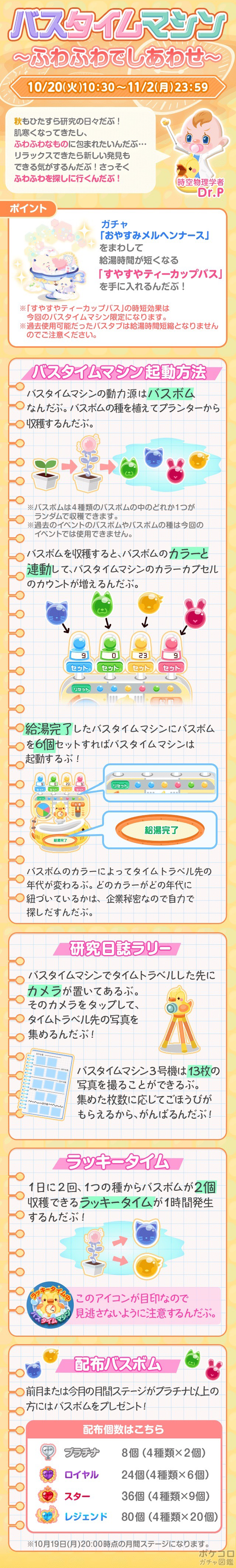 ポケコロバスタイムマシン18年10月のガチャ一覧の最新情報と攻略法を紹介 リアつぼ